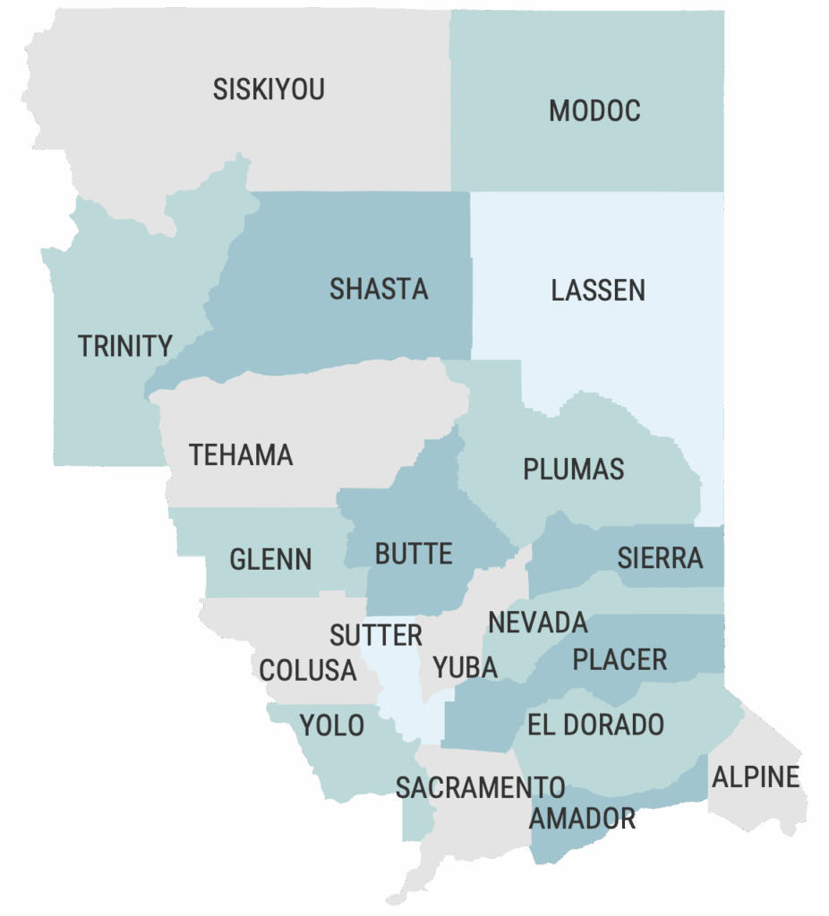 Sacramento Valley Section includes the counties of Sacramento, Amador, Alpine, Yolo, Sutter, Placer, El Dorado, Colusa, Yuba, Nevada, Glenn, Butte, Sierra, Plumas, Tehama, Trinity, Shasta, Lassen, Siskiyou and Modoc